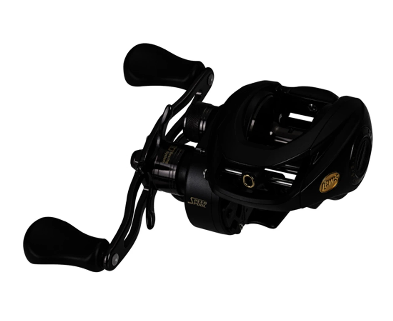 - 95mm BOWED HANDLE is made of lightweight anodized aluminum with Lew’s Pro Power knobs to smoothly translate angler effort into cranking power