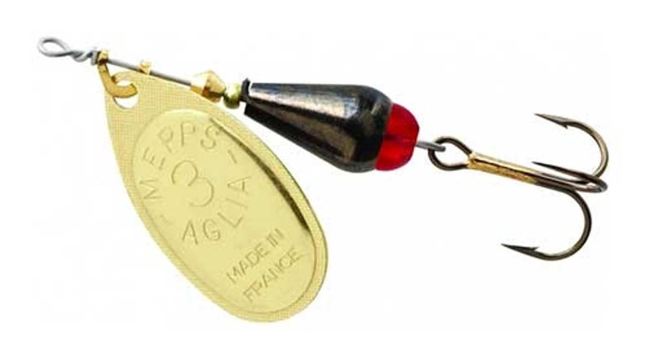In addition to the classic Mepps French blade, every Mepps Aglia BRITE features a solid brass brightly-colored, high-visibility body with a durable, chip-resistant finish. There’s also a BRITE strike-attractor bead and an extra-sharp VMC hook. Blades are either genuine silver plate or polished brass.