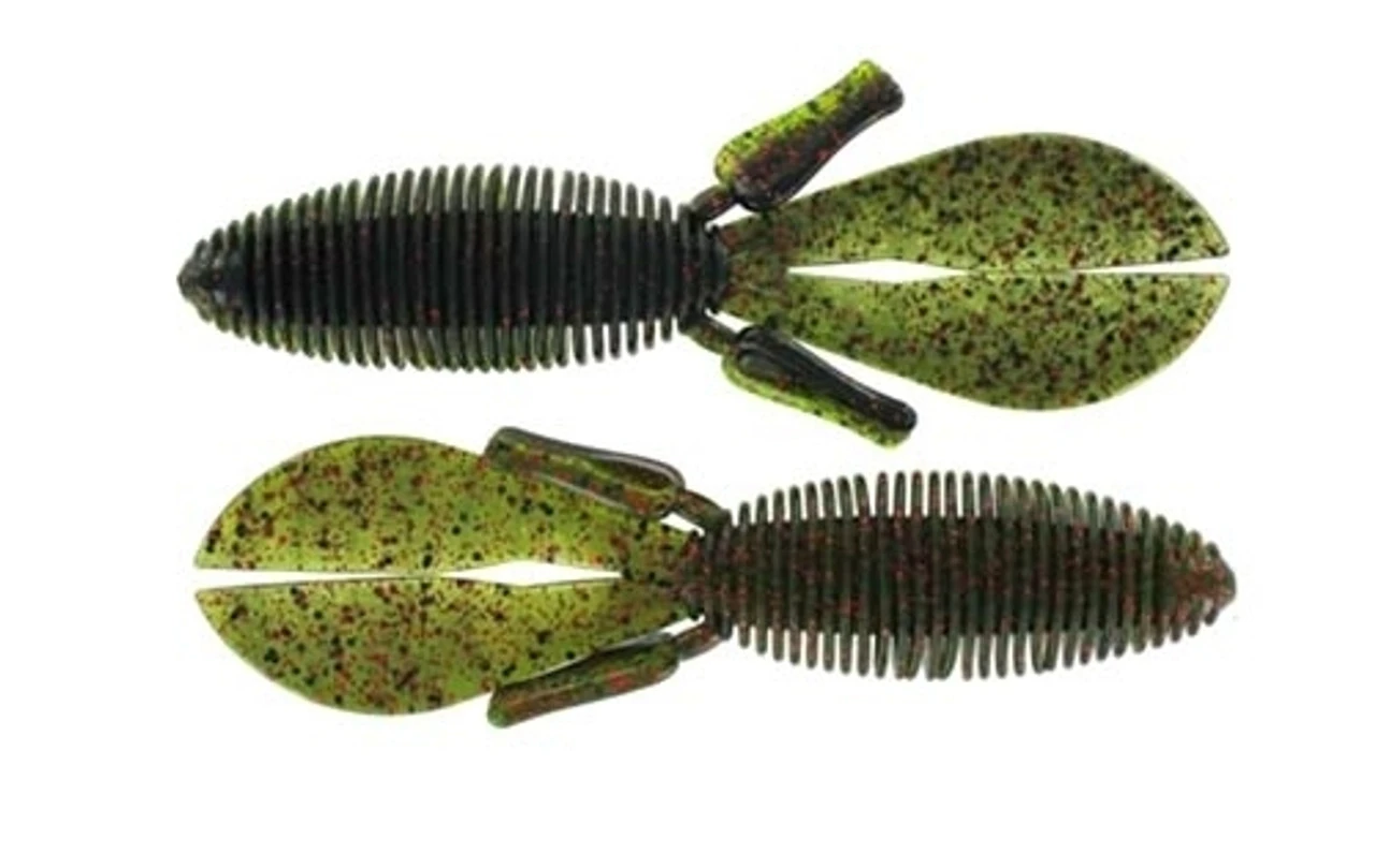 The Missile Baits D Bomb has become synonymous with pitching and flipping. The Baby D Bomb is the smaller offspring to the extremely popular D Bomb. The Baby D Bomb is a 3.65″ creature bait with a unique ribbed body that displaces lots of water resulting in a straight fall. Compared to the full size D Bomb, the Baby D Bomb has a smaller, yet bulky, profile to flip and pitch but it also has finesse applications. When Texas rigging the Baby D Bomb, the bait has a thinner ribbed body that can still accommodate a 3/0 flipping hook. It also can be rigged on a shaky head or drop shot. As always, the hook sets are solid with the Baby D Bomb and its thin tails have the subtle action fish love. The real key to this bait is the flat plastic tail that sails when left connected or flaps wildly when separated. The details are what make this bait – one such design element is the thing plastic body which results in easier hook penetration, however, the plastic in the head of the bait keeps the hook in place.We carry the Missile Baits Baby D-Bomb in several excellent colors. 7 per pack.