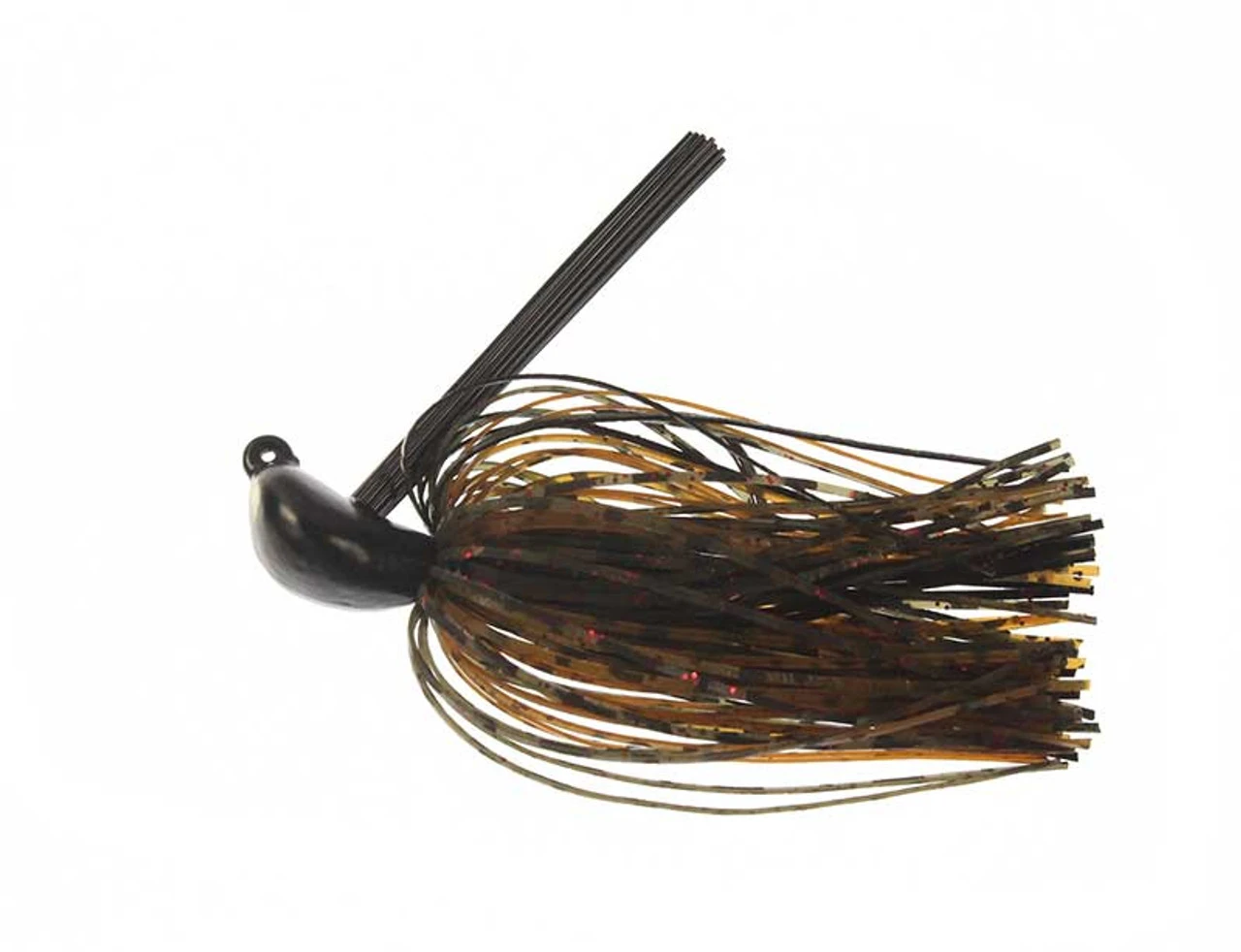 This Finesse Jig is built on our Arkie Head platform with a smaller 2/0 Owner Deep Throat Hook and a Medium Stiffness Weedguard. Perfect for a smaller package when the bite is tough. The Arkie Jig is one of the best All-Purpose jig heads ever made. Built around Owner’s Deep-Throat hook, the Lil B Arkie jig is a workhorse. It can be used in all types of cover and structure. The Hand-Tied skirt will never move, so your custom color skirt will stay put. No rubber collar to rot away and let your skirt strands pull out. The baked-on Powder Painted head will last. The Lil B Arkie Jig has a Meduim Weedguard to help deflect cover. The special angled-bend of the Owner Deep-Throat hook does a great job of keeping your trailer in place and won’t let it slide down the hook. Tie on a Mr B Lil B jig and let it do the work.
