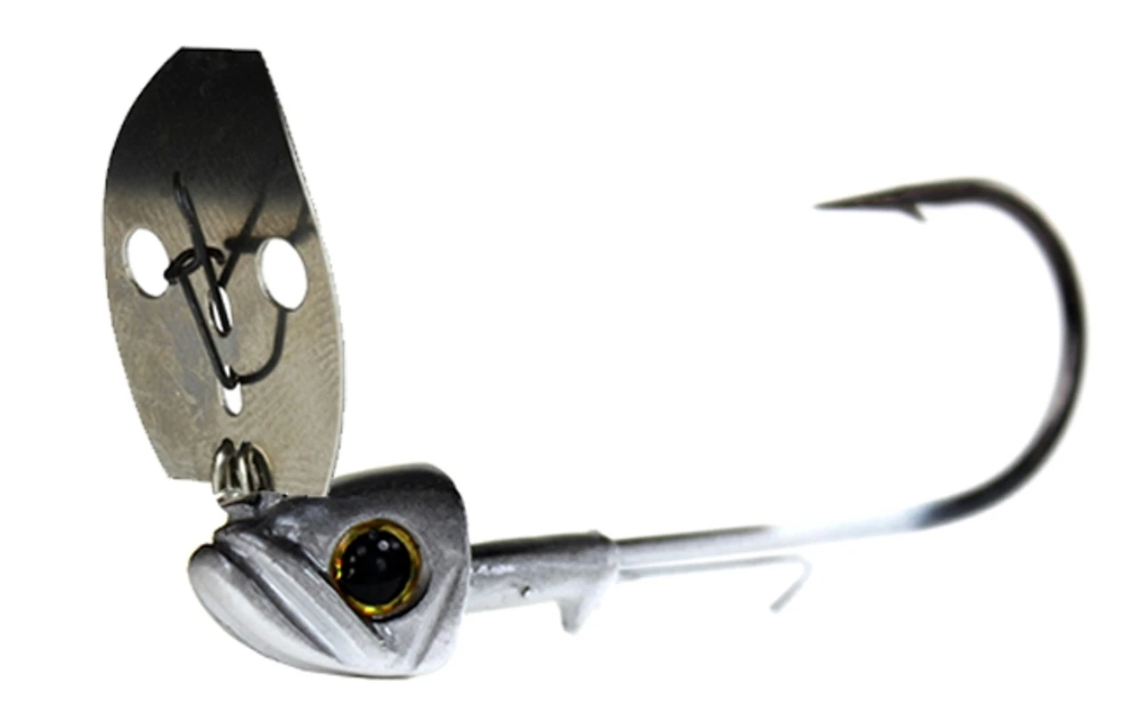 The Picasso Undressed Shock Blade is a vibrating style jig head that displays an erratic swimming action as it is retrieved through the water. Living creatures are anything but uniform in their movements especially when it comes to prey being pursued by predators. Fishing lures are often limited in their ability to replicate randomness due to the laws of physics and principals of engineering, however, as technology advances, we get closer to replicating it. The Picasso Undressed Shock Blade seeks to capture a bit of the randomness of living creatures while also playing upon bass’s reliance on their lateral lines for finding food. As is the case with many vibrating jigs, the Picasso Undressed Shock Blade makes use of a hinged blade to create a vibrating, frenzied swimming motion that looks like a real life fish and emits shockwaves through the water grabbing the attention of any nearby predator.