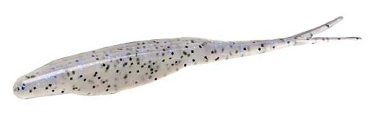 The Zoom Super Fluke Jr. is a soft plastic jerkbait that replicates the profile and action of several types of shad across the country. The Original Super Fluke has gained world-wide acclaim for its slender baitfish profile and methodical side to side action when retrieved. The smaller jr. version maintains those great qualities, but offers a smaller bait for situations that call for a bit more finesse. The bait is best used in the post-spawn period all the way into fall when bass are feeding on the shad that scurry across the surface.Simply cast the bait out and twitch it ever so slightly side to side and watch as the subtle action causes bass to strike. The Jr. Super Fluke is 4″ long and comes 10 baits per pack.